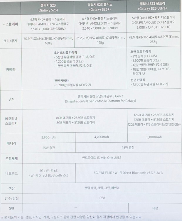 ③갤럭시 S23 울트라 스펙
