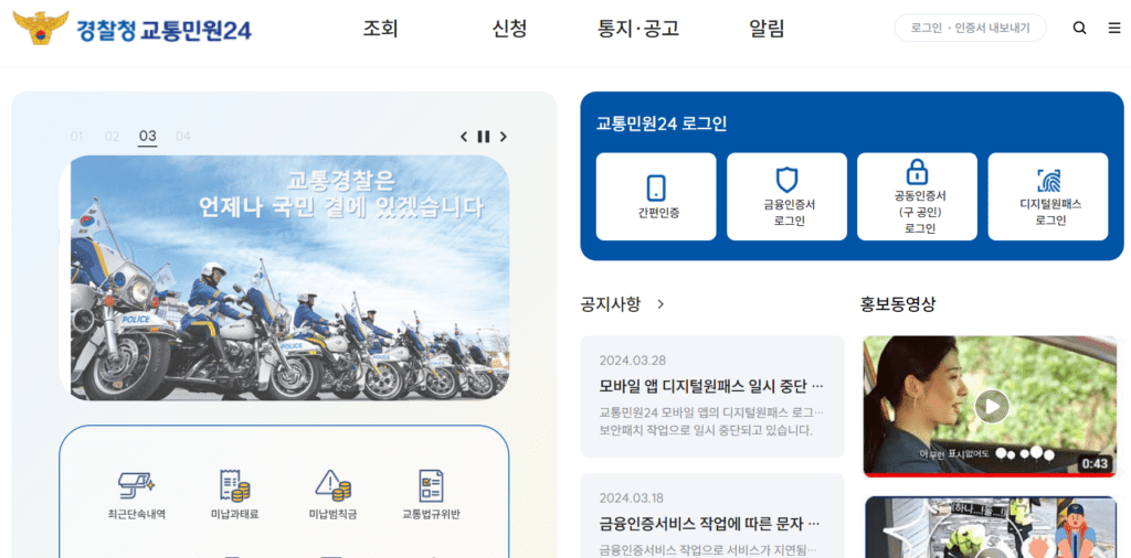 모바일에서 확인할 때에는 교통민원24(이파인) 어플을 통해서 확인을 하는 것이 간편합니다.