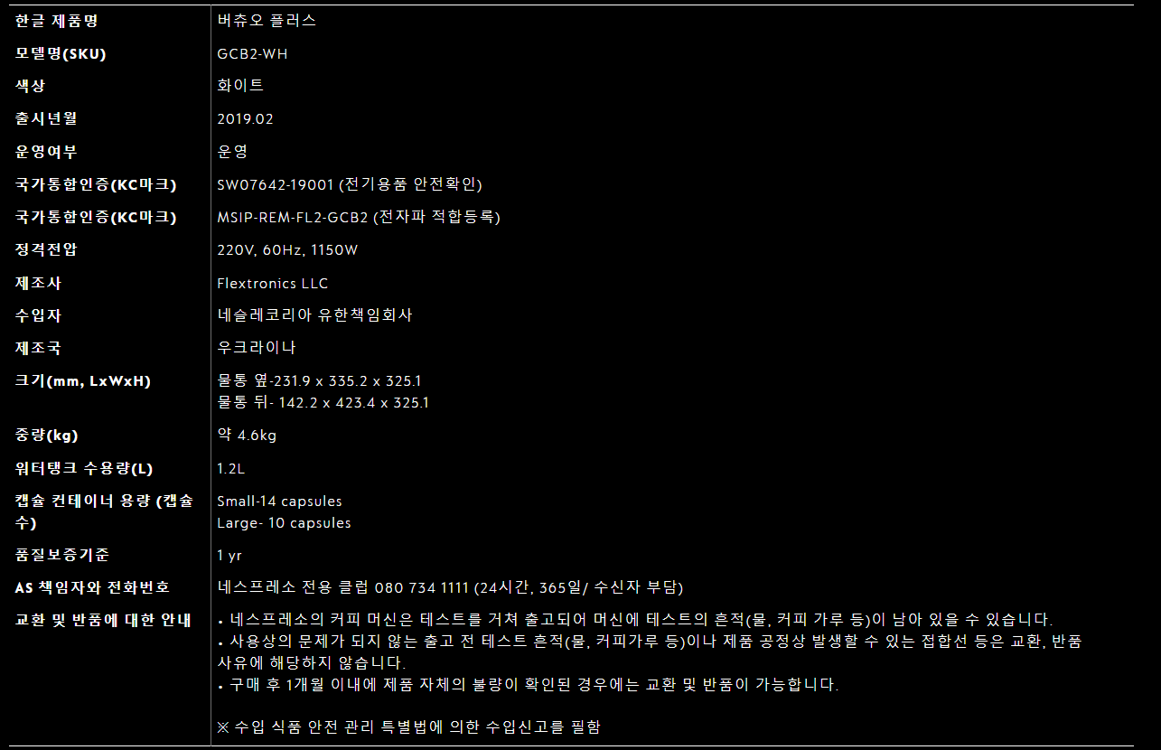 완벽한 커피 경험을 위한 혁신적인 커피 머신 버츄오 플러스 머신은 혁신적인 센트리퓨전 회전 추출로 풍부한 크레마와 깊은 바디감의 커피를 완성하고, 버튼 한번으로 최적의 커피를 만드는 원터치 바코드 테크놀로지로 당신이 원하는 완벽한 커피를 만들어 줍니다. 에스프레소부터 머그 이상의 큰 컵까지 원하는 취향에 맞춰 다양한 5가지 커피 스타일을 즐길 수 있습니다.버츄오 커피 머신은 오리지널 커피 머신과 시스템이 달라 캡슐 혼용이 불가능합니다.구매를 원하시는 머신과 커피 시스템을 정확히 체크하시고 구매해 주시기 바랍니다. 버츄오 플러스는 가정용으로 사용되도록 제작되었습니다.