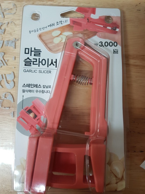 다이소 주방용품 추천템 입니다. 바로 마늘슬라이서 입니다. 가격은 3000원으로 구입후 아주 잘쓰고 있습니다. 사용해본 결과 항상 집에서 고기를 구워먹을때 슬라이서된 마늘을 마트에서 찾곤 했지만 지금은 통마늘이 있어도 집에서 쉽게 자르게 때문에 아주 추천해주고 싶은 아이템입니다. 작은 마늘을 칼로 자르다보면 손도 위험하고 불편했는데 이젠 쉽게 마늘을 슬라이서해서 먹을 수 있어서 좋은거 같습니다.