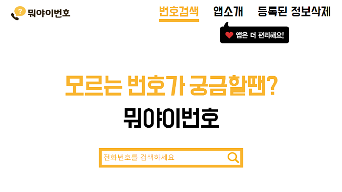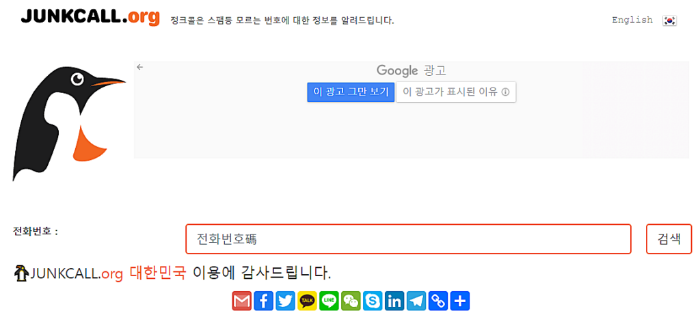 광고나 보이스 피싱 등의 스팸 전화번호를 검색 할 수 있도록 인터넷 홈페이지, 모바일 앱으로 제공하는 서비스입니다.