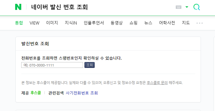 우리나라와 제일 친숙한 플랫폼 네이버 검색창에 ‘발신번호검색‘ 단어를 검색하면 모르는 번호를 검색할 수 있는 창이 나옵니다. 네이버의 발신 번호 검색의 스팸 번호, 사기 전화번호 등의 정보는 앞서 알아보았던 후스콜에서 제공 하고 있습니다.
