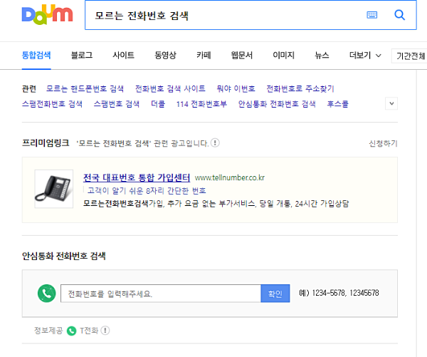 ◎다음 안심 통화 전화번호 검색