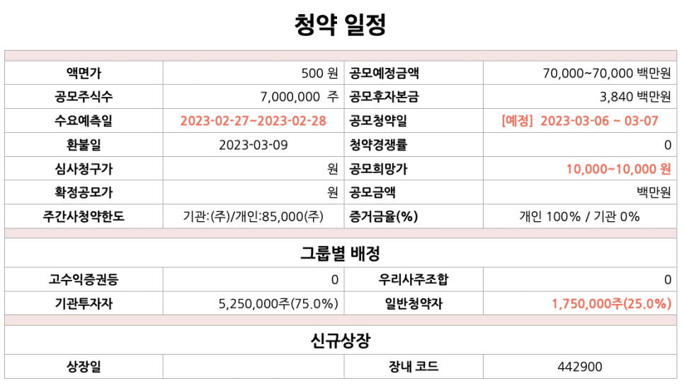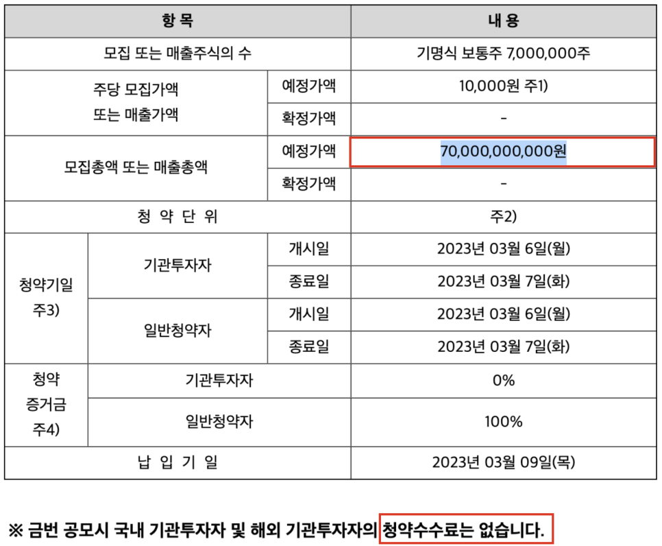 기관투자자 청약수수료 1%에서 없음으로 변경되었습니다.
