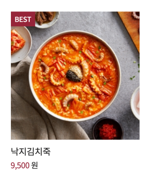 본죽 메뉴 전통죽, 별미죽 또한 인기가 많습니다. 특히 낙지 김치죽은 심심하다는 죽의 편견을 깨고 만들어진 메뉴입니다. 쫄깃한 낙지와 아삭하고 매콤한 김치의 환상 궁합입니다. 낙지와 김치에서 끓일수록 은은하게 우러난 단맛이 매콤한 맛에 어우러져 특유의 맛깔스러운 감칠맛을 완성합니다. 매콤한 맛을 좋아하는 분들에게 인기가 많은 본죽 메뉴입니다.