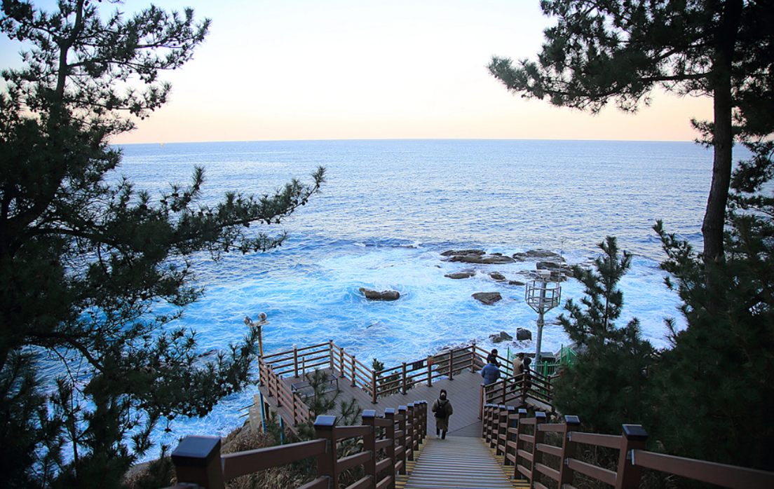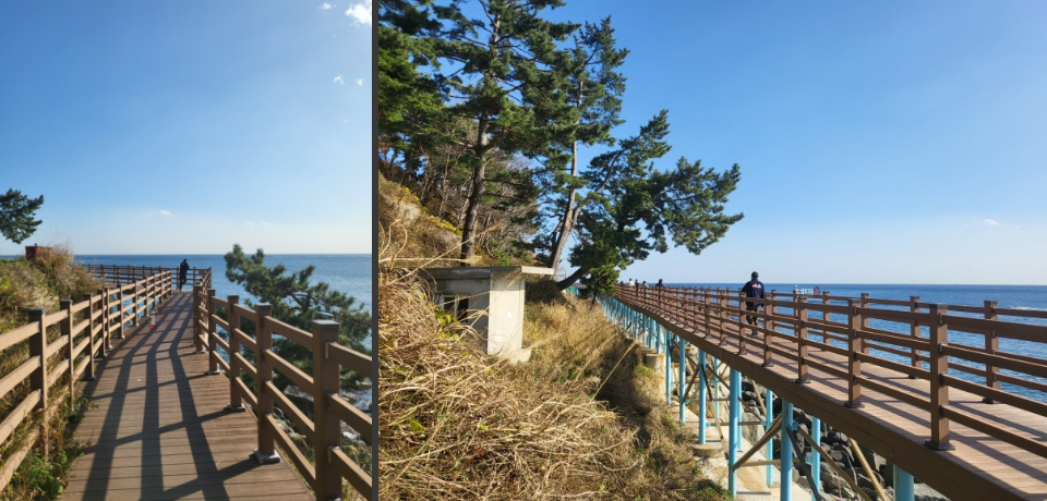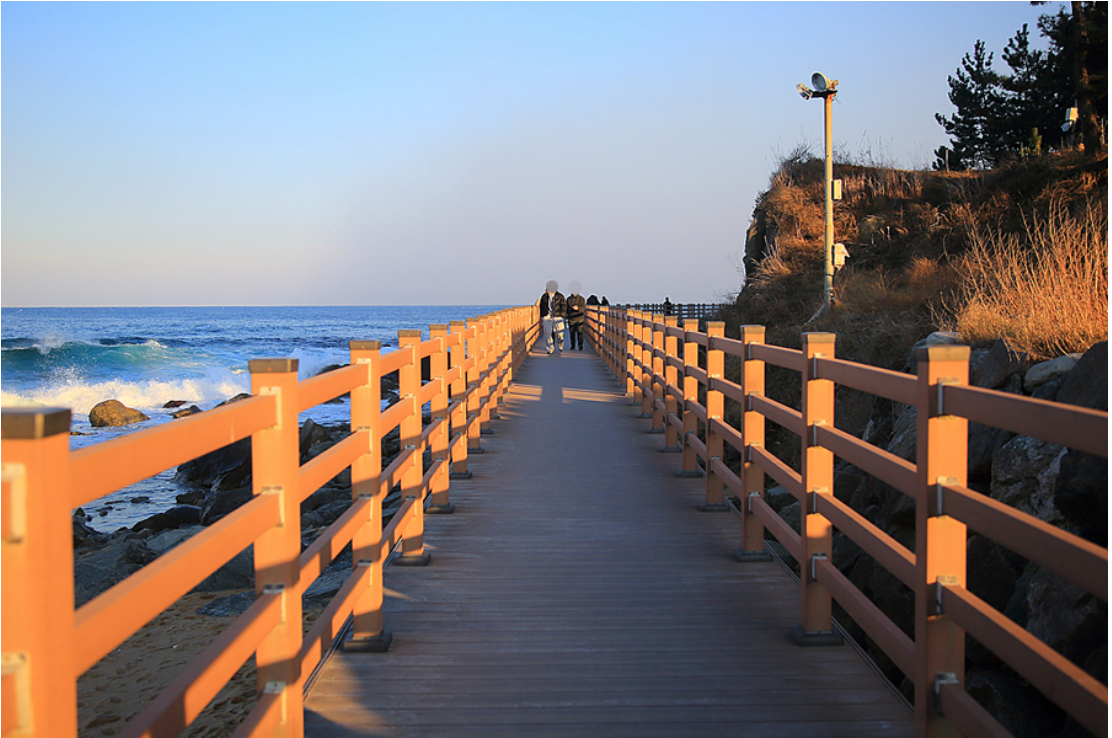바다향기로는 속초해수욕장에서 외옹치항까지 1.74km에 걸쳐 이어진 이색적인 해안 산책 코스다. 크게 속초해수욕장 구간(850m)와 외옹치 구간(890m)으로 나뉘며 구간마다 서로 다른 분위기를 지녔다. 가볍게 해변을 따라 걷고 싶다면 속초해수욕장 구간이 적합하며 다이나믹한 풍경을 담고 싶다면 외옹치 구간을 추천한다. 외옹치 구간은 수십 년간 민간인 출입이 통제되었던 곳으로 오랫동안 사람 손때를 타지 않은 천혜의 비경을 품고 있다. 드라마 <남자친구> 촬영지로도 유명하다. 나무 데크 탐방로와 흙길을 오가는 산책로를 따라 푸른 바다가 끝없이 이어지며 철썩이는 파도 소리가 청량감을 더한다. 바닷물이 맑고 깨끗해 바닥이 훤히 비칠 정도다. 외옹치 구간은 대나무 명상길, 하늘 데크길, 안보 체험길, 암석 관찰길 4개 테마 코스로 꾸며졌다. 안보 체험길에 둘러쳐진 해안선 경계 철책은 1970년 무장공비 침투 사건 이후 설치했던 것을 일부분 남겨 놓은 것이다. 굴바위, 지네바위 등 해안가에 형성된 기이한 바위들을 관람하는 재미도 쏠쏠하다.