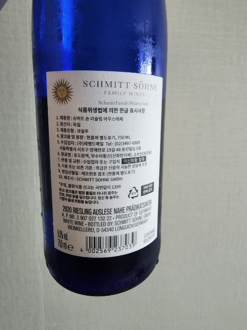 슈미트 숀 리슬링 아우스레제 와인 후기..달달..[스위트와인]