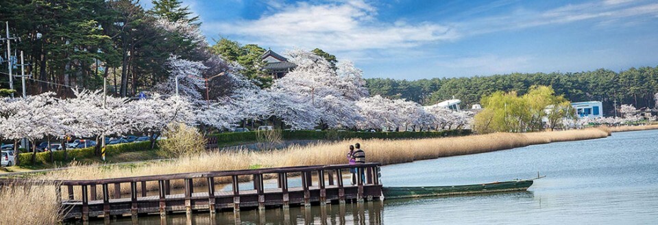 경포대 (강원도 강릉시) : 경포대는 강릉의 명승지로 벚꽃나무와 바다 경치로 유명합니다. 그 지역은 벚꽃이 피는 계절에 특히 아름답고, 방문객들은 해변을 따라 한가롭게 산책하거나 근처의 경포 호수를 탐험할 수 있습니다.