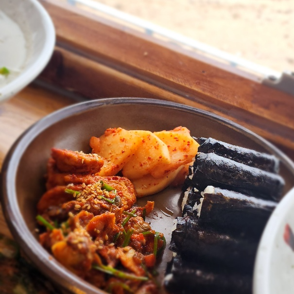 충무김밥에나오는 꼬막무침이 신의한수~ 석박지와 오뎅 꼬막무침 조합이 좋았다.
