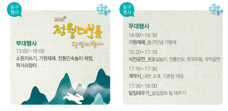 | 무료음식제공 | 16:00~ | 귀밝기술,순두부보름떡,부럼,차 |