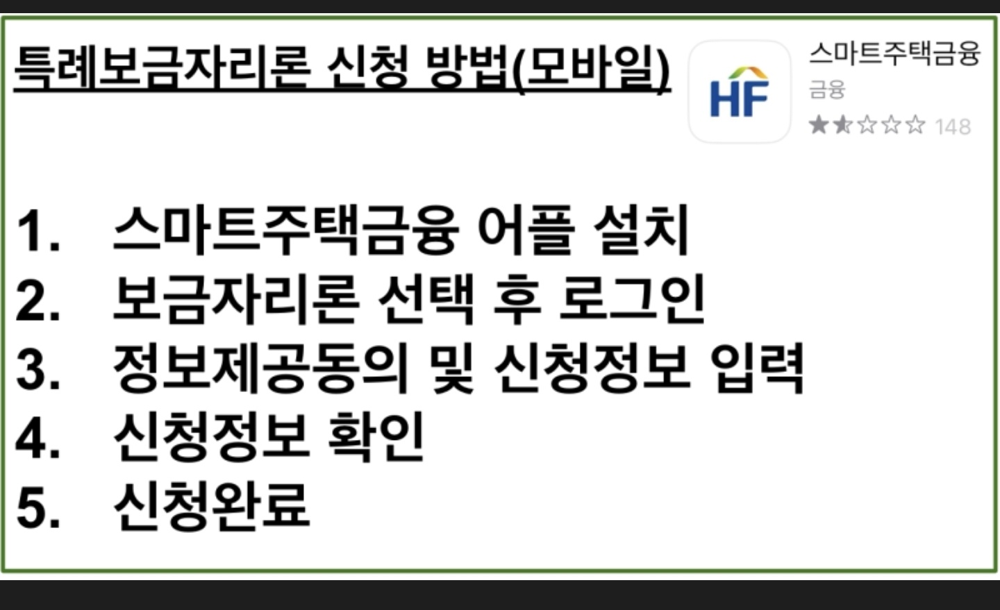 한국주택금융공사 홈페이지에 접속해서 위 절차대로 따라주면 됩니다. 그리고 모바일로 신청하려면 스마트주택금융 어플을 먼저 설치해 줘야 합니다. 앱스토어나 구글플레이스토어에서 스마트주택금융을 검색해서 설치한 뒤에 아래 절차에 따라 신청할 수 있습니다.
