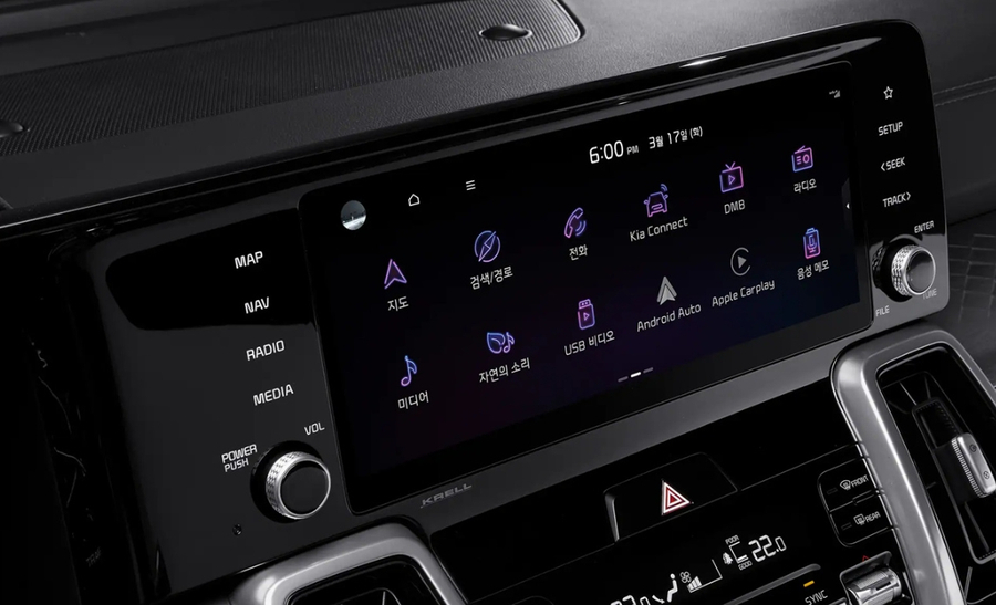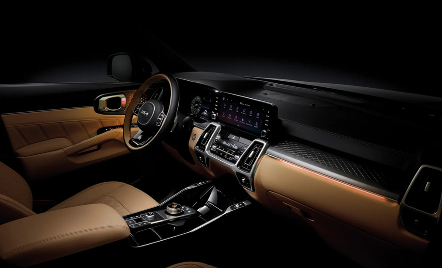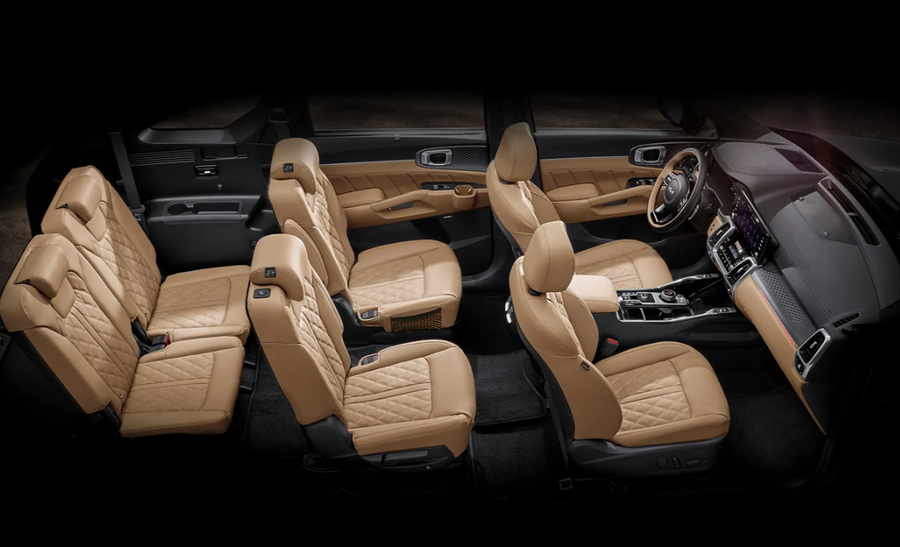 테일램프 중앙에 기아 신규 엠블럼이 위치했고, 리어범퍼는 하단 디퓨저가 스키드플레이트와 결합된 디자인을 보여줍니다. 크기는 기존과 동일합니다. 전장 4,810mm, 전폭 1,900mm, 전고 1,700mm, 휠베이스 2,815mm이며 트렁크 용량은 705리터입니다.2열 폴딩 시 2,000리터까지 확장됩니다.